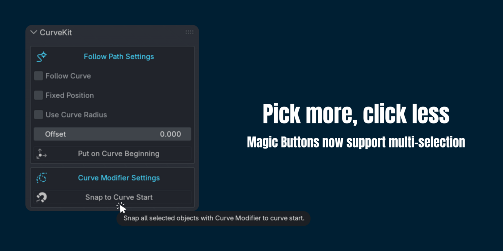 Designed for speed and efficiency, CurveKit eliminates repetitive setup tasks with powerful one-click operators, letting you focus on your creative vision instead of the technical steps.
